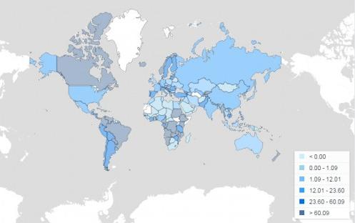 上圖為再生能源輸出比重圖。從圖中可以看出部分拉丁和非洲國家目前再生能源的使用率已超過了80%。比如,巴西已達(dá)到82.47%,剛果達(dá)到了99.56%。這些地區(qū)主要以水電為主,因此占比較大。非洲撒哈拉以南地區(qū),再生能源的使用比例相差很大,比如馬拉維為9.8%,中非共和國為10.8%,莫桑比克為20.2%。這些地區(qū)再生能源比例偏低,主要因?yàn)椴痪邆湓偕茉词褂玫臈l件或缺乏投資。