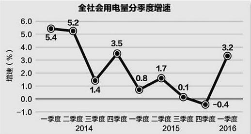 2015年下半年,受國(guó)際經(jīng)濟(jì)復(fù)蘇緩慢以及我國(guó)經(jīng)濟(jì)結(jié)構(gòu)加快調(diào)整等因素影響,我國(guó)經(jīng)濟(jì)增速持續(xù)下行,GDP增速?gòu)纳习肽甑?%下降至第三季度的6.9%和第四季度的6.8%。受此影響,我國(guó)用電量增速也從上半年的1.3%下降至第三季度的0.1%,第四季度用電量負(fù)增長(zhǎng)0.4%。當(dāng)時(shí)不少觀點(diǎn)認(rèn)為,今年一季度經(jīng)濟(jì)下行壓力將進(jìn)一步加大,電力需求可能繼續(xù)負(fù)增長(zhǎng)。