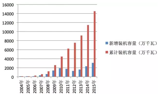 圖3 歷年中國風(fēng)電新增和累計并網(wǎng)容量