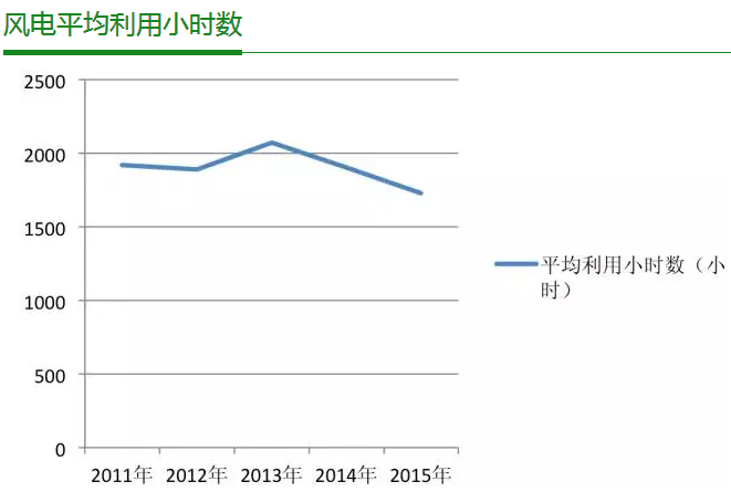 2015年中國風(fēng)電機(jī)組設(shè)備平均利用小時數(shù)為1728小時,相比2014年的1905小時,下降了177小時,相比2014年的2074小時,下降346小時。平均利用小時數(shù)最高的省(市、區(qū))是福建,達(dá)到了2658小時;最低的省份是甘肅,為1184小時。一些省(市、區(qū))的利用小時數(shù)與2014年相比降低明顯,新疆減少703小時,貴州減少了651小時,甘肅減少了416小時,但也有一些省(市、區(qū))的利用小時數(shù)有所增加,其中廣西增加561小時,天津、福建、湖南、重慶、四川等也有不同幅度的增加。但總體來說,全國利用小時數(shù)降低的省份降低幅度,比增加的省份所增加幅度要更大一些。