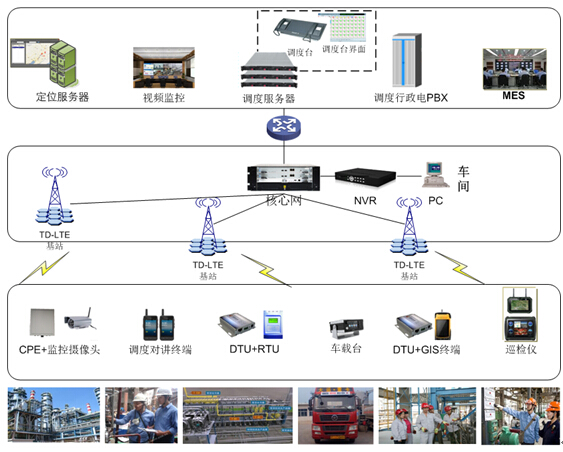 針對(duì)以上問(wèn)題,大唐移動(dòng)將TD-LTE第四代移動(dòng)通信技術(shù)與煉化企業(yè)自身生產(chǎn)特點(diǎn)和需求緊密結(jié)合,以物聯(lián)網(wǎng)系統(tǒng)架構(gòu)為模型,將TD-LTE系統(tǒng)特性與煉化企業(yè)信息化相關(guān)的生產(chǎn)子系統(tǒng)相匹配,形成技術(shù)領(lǐng)先、功能專(zhuān)業(yè)、性能優(yōu)良、高度集成、面向煉化企業(yè)的TD-LTE生產(chǎn)現(xiàn)場(chǎng)管理系統(tǒng)。