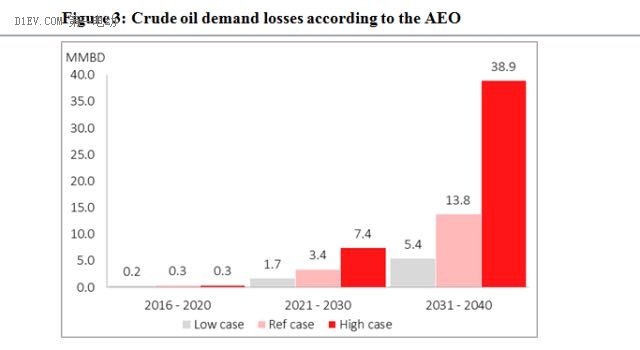 從中期來看,我們必須要注意到近期原油價格的波動已經(jīng)造成了原油市場上接近2mmbd的供需失衡,在替代能源展望的低速增長模型中,我們已經(jīng)從原油需求中留出了空間。展望得出的結(jié)論是,電動汽車將影響長期原油需求,并進一步加大原油價格下滑的壓力。