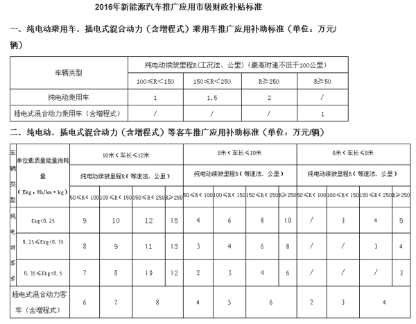 1、2016年新能源汽車推廣應(yīng)用市級(jí)財(cái)政補(bǔ)貼標(biāo)準(zhǔn)