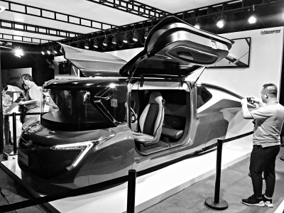 漢能最新展出的SolarL太陽(yáng)能汽車(chē)。本報(bào)記者鄧偉攝