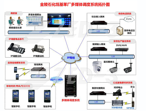 通過對金陵石化烷基苯廠的實地調(diào)研以及對其調(diào)度系統(tǒng)需求的深入了解,捷思銳科技提供了一套基于NGN架構(gòu)的多媒體調(diào)度系統(tǒng),它不僅支持豐富的多媒體調(diào)度功能,還可以與28181視頻監(jiān)控平臺、視頻會議系統(tǒng)、常規(guī)對講網(wǎng)絡、PSTN電話、運營商短信等網(wǎng)絡充分融合,實現(xiàn)烷基苯廠所有音視頻系統(tǒng)的整體融合。