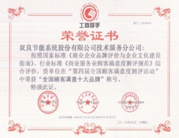 9月24日,第四屆全國顧客滿意度測評活動揭曉發(fā)布暨頒獎大會在西安舉行,雙良節(jié)能系統(tǒng)股份有限公司憑借其前瞻的服務理念、優(yōu)質的服務實踐以及良好的口碑,榮獲“全國顧客滿意十大品牌”稱號。
