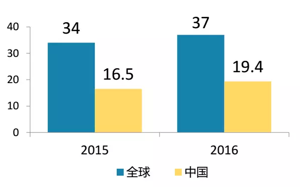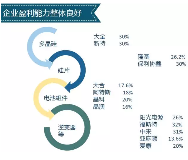 2016年中國共裝機(jī)34.54GW(連續(xù)4年第一),其中地面電站30.3GW,分布式電站4.24GW。增速大,消化前幾年項(xiàng)目是主要原因之一。