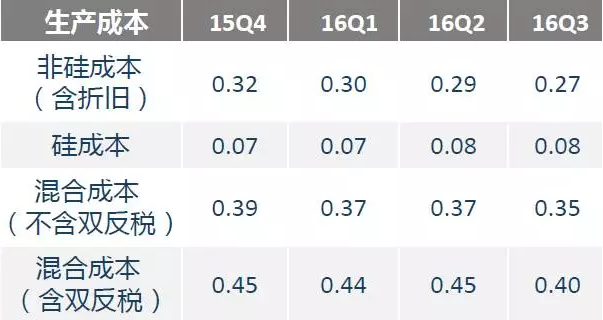 成本:持續(xù)下降,部分企業(yè)加工成本甚至降至2.45元/w(0.35美元/w)以下;