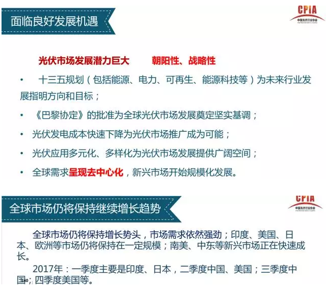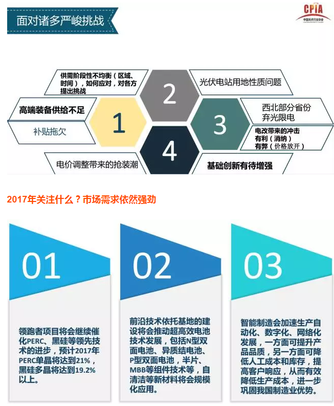 2017年2月16日,中國光伏行業(yè)協(xié)會(huì)秘書長王勃華詳細(xì)介紹了2016年中國光伏產(chǎn)業(yè)的發(fā)展?fàn)顩r,并對(duì)2017年的發(fā)展趨勢(shì)進(jìn)行了預(yù)判。以下為報(bào)告的詳細(xì)內(nèi)容: