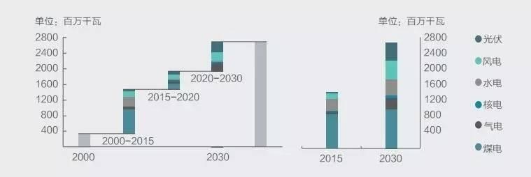 圖:電力系統(tǒng)發(fā)展情景(2015-2030)
