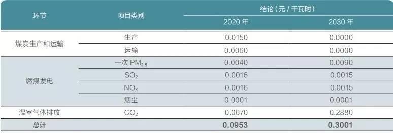 表:2020/2030年燃煤發(fā)電環(huán)境外部成本(單位:元/千瓦時(shí))