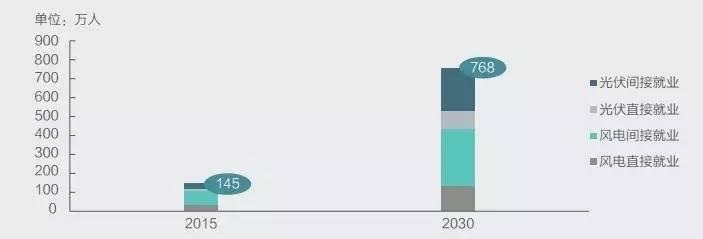 圖:風(fēng)光發(fā)電的就業(yè)影響(2015-2030)