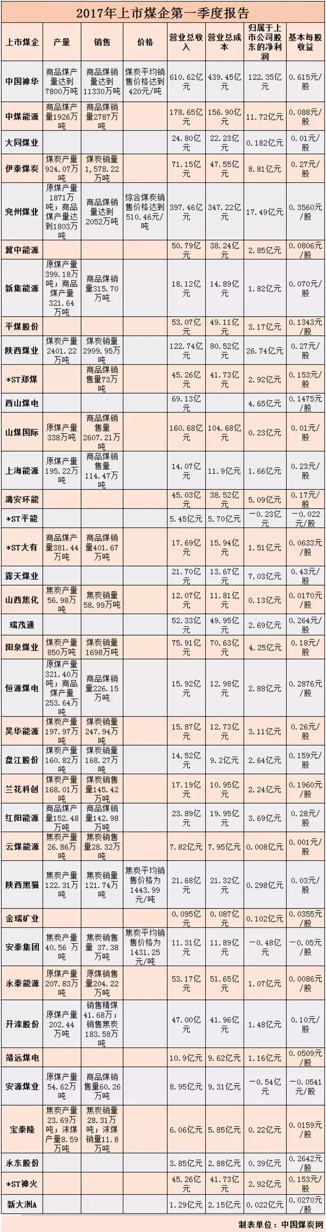 全年業(yè)績剛過不久,4月迎來首季業(yè)績報告,截至5月4日,37家煤炭企業(yè)發(fā)布了2017年一季報,小編已經(jīng)全部整理了出來,多家煤炭股企業(yè)的業(yè)績亮眼,中國神華、兗州煤業(yè)等利潤都大升,煤炭行業(yè)的春天來了嗎?