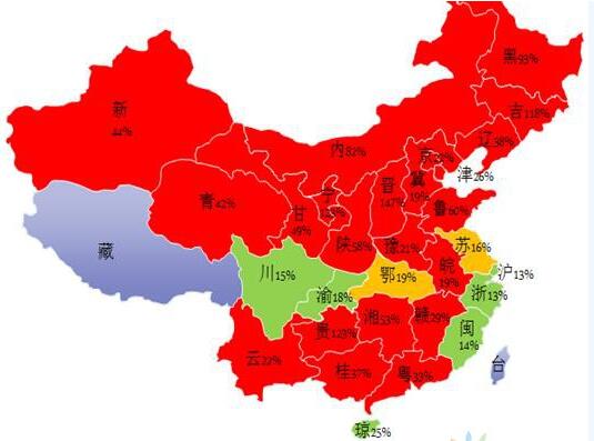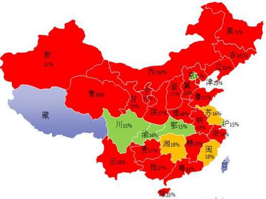 圖2 2015年各省電力系統(tǒng)實際備用率估算