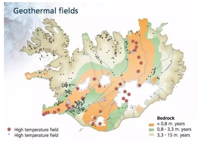 冰島是高緯度的北歐國(guó)家,位于北美和亞歐板塊的邊界地帶,兩個(gè)板塊以每年2cm的速度移動(dòng),交界線從西南向東北貫穿全島。特殊的地質(zhì)構(gòu)造和活躍的地殼活動(dòng)為冰島帶來(lái)了豐富的地?zé)豳Y源。