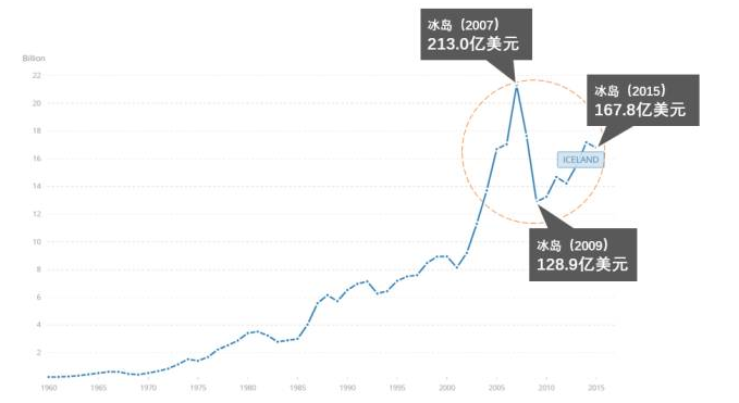 圖:冰島國(guó)民生產(chǎn)總值GDP(1960-2015)