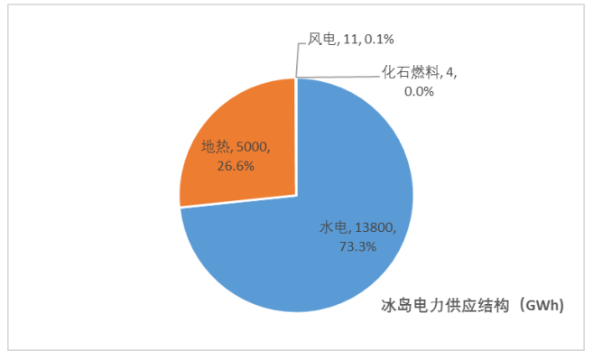人均年用電量全球最高,約合5萬(wàn)千瓦時(shí),是中國(guó)的15倍左右。目前冰島的電源結(jié)構(gòu)中,地?zé)峤咏?0%,73.3%來(lái)自水電,而風(fēng)電僅為0.1%,化石燃料幾乎為0。