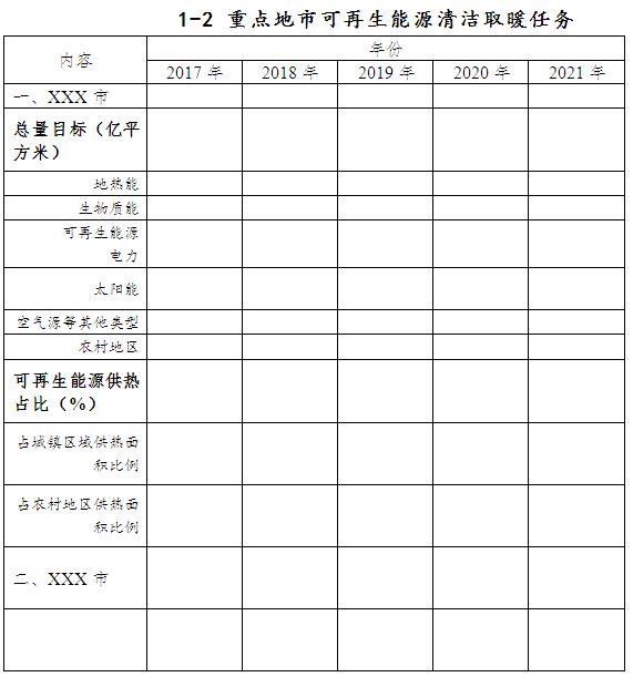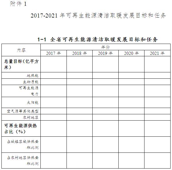 附件:1. 2017-2021年可再生能源清潔取暖發(fā)展目標(biāo)和任務(wù)