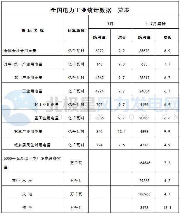 國(guó)家能源局昨日發(fā)布1-6月份全國(guó)電力工業(yè)統(tǒng)計(jì)數(shù)據(jù)。數(shù)據(jù)顯示,1-7月全國(guó)6000千瓦及以上風(fēng)電發(fā)電設(shè)備容量為15522萬千瓦,同比增12.5%。以下為具體數(shù)據(jù):