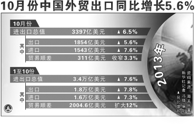 10月外貿(mào)出口增速“轉(zhuǎn)正” 進出口同比增速雙升海關(guān)總署昨日公布的數(shù)據(jù)顯示,今年10月我國出口額1854億美元,同比增5.6%,由9月的同比負增長重新轉(zhuǎn)正。數(shù)據(jù)顯示,10月我國進出口總值達3397億... [詳細]