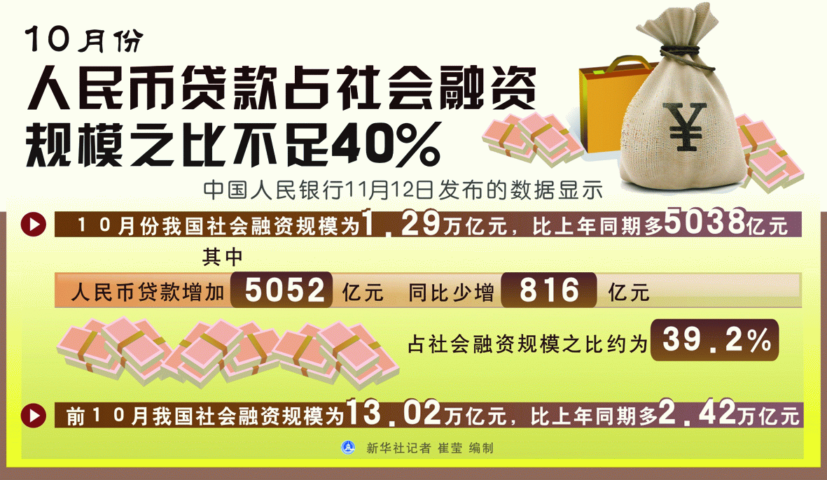 十月新增貸款5061億元 低于預期10月新增貸款較上月明顯回落,僅有5061億元,為今年以來新低;而廣義貨幣供應量(M2) 為14.3%,較上月的14.2%略有上升。 [詳細]