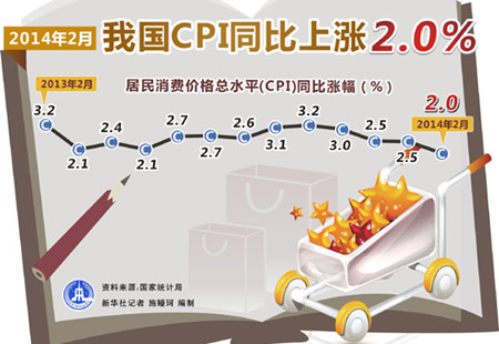 節(jié)日影響減弱致2月CPI回落 全年調(diào)控目標(biāo)有望實現(xiàn)國家統(tǒng)計局9日發(fā)布的數(shù)據(jù)顯示,2月份全國居民消費價格總水平(CPI)同比上漲2.0%,比1月份同比漲幅回落0.5個百分點,創(chuàng)去年2月以來的新低。分析人士指出,2月CPI漲幅回落的主要原因是春節(jié)過后食品價格明顯下降。預(yù)計全... [詳細(xì)]