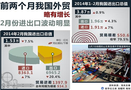 2月貿(mào)易逆差近230億美元 分析稱3月份或?qū)⒒謴?fù)2月份,我國進(jìn)出口總值2511.8億美元,同比下降4.8%。其中,出口1141億美元,下降18.1%;進(jìn)口1370.8億美元,增長10.1%;貿(mào)易逆差229.8億美元,去年同期為順差148億美元。業(yè)內(nèi)人士分析認(rèn)為,春節(jié)因... [詳細(xì)]