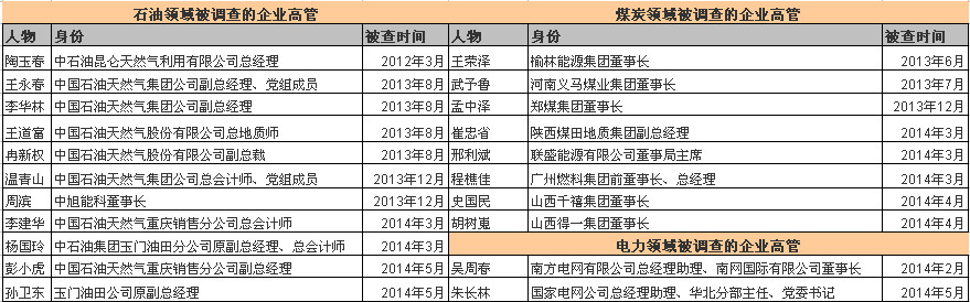 黨的十八大以來,從中央到地方持續(xù)掀起了反腐風(fēng)暴,十八屆三中全會(huì)通過的決定也對(duì)加強(qiáng)反腐敗體制機(jī)制創(chuàng)新和制度保障進(jìn)行了重點(diǎn)部署。今年3月,最高人民檢察院反貪污賄賂總局副局長(zhǎng)詹復(fù)亮表示,今年檢察機(jī)關(guān)將嚴(yán)肅查辦資金密集行業(yè)特別是鐵路、電力、石油、電訊等壟斷行業(yè)的案件。據(jù)統(tǒng)計(jì),從今年開始,截至5月15日,據(jù)中央中央紀(jì)委監(jiān)察部網(wǎng)站通報(bào),能源領(lǐng)域已有11名高官或高管因反腐"落馬",涉及石油、煤炭、電力等行業(yè)。