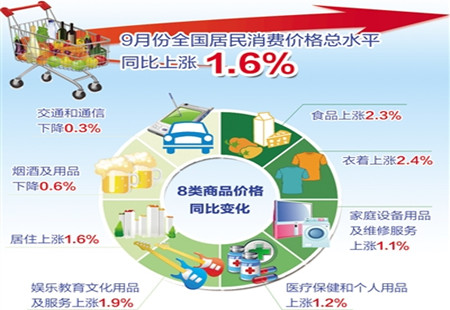 統(tǒng)計局:9月CPI同比上漲1.6% 環(huán)比上漲0.5%