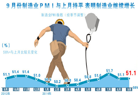 統(tǒng)計局解讀9月PMI:經(jīng)濟增長步入新常態(tài)2014年10月1日國家統(tǒng)計局服務(wù)業(yè)調(diào)查中心和中國物流與采購聯(lián)合會發(fā)布的中國制造業(yè)采購經(jīng)理指數(shù)顯示,2014年9月中國制造業(yè)PMI為51.1%,與上月持平,表明我國制造業(yè)總體上仍然延續(xù)擴張態(tài)勢。從近期PMI和其他主要經(jīng)濟... [詳細]