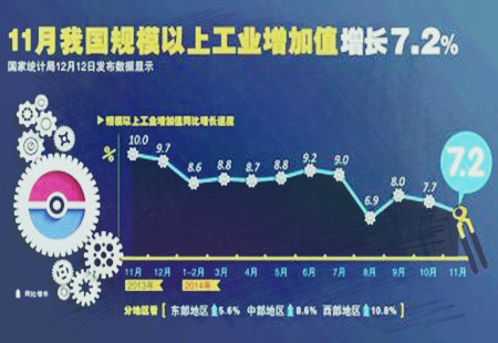 11月工業(yè)增加值同比增速回落至7.2%統(tǒng)計(jì)局12日公布數(shù)據(jù),2014年11月份,規(guī)模以上工業(yè)增加值同比實(shí)際增長(zhǎng)7.2%(以下增加值增速均為扣除價(jià)格因素的實(shí)際增長(zhǎng)率),比10月份回落0.5個(gè)百分點(diǎn)。從環(huán)比看,11月份比上月增長(zhǎng)0.52%。1-11月份,規(guī)模以上... [詳細(xì)]
