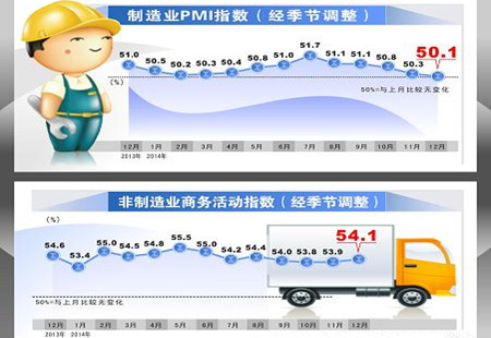 12月PMI回落幅度收窄 經(jīng)濟(jì)穩(wěn)定性有所增強(qiáng)2014年12月份中國PMI為50.1%,較上月回落0.2個百分點(diǎn),降幅收窄,反映出當(dāng)前經(jīng)濟(jì)下行態(tài)勢趨緩。從2014年全年來看,制造業(yè)PMI平均水平50.7%,與前兩年平均水平基本相當(dāng),指數(shù)繼續(xù)回落,但降幅收窄,表明工業(yè)... [詳細(xì)]