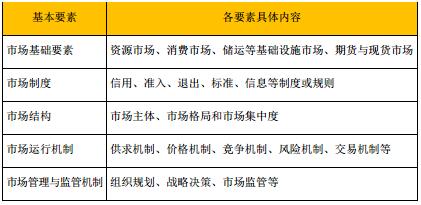 表1:天然氣市場體系基本構(gòu)成要素